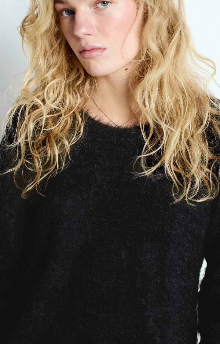 Nuny Sweater Charcoal Melange. Mørk gråmelert, langermet genser med U-hals, i alpakkablanding fra American Vintage. Fantastisk myk og lett!