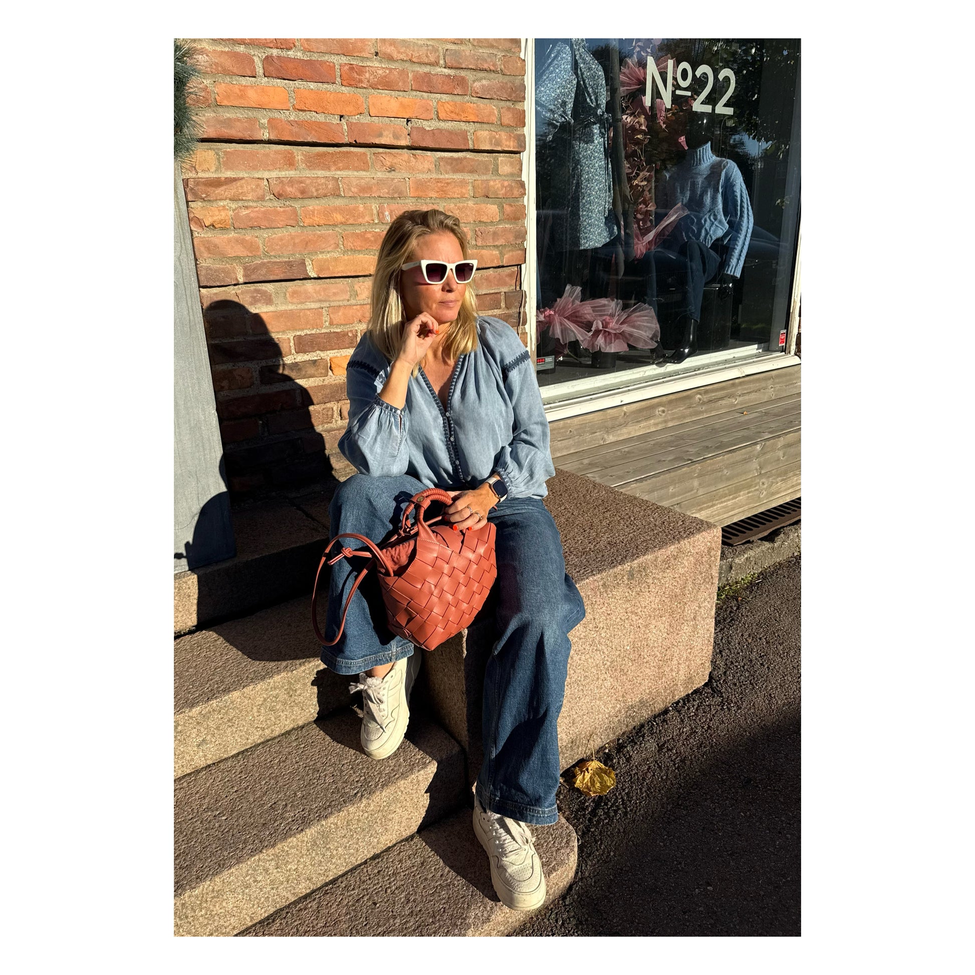 Misu Henna. Misu-vesken fra Calajade har blitt en klassiker. Vesken kombinerer funksjon og design, og er håndflettet i India. Kan brukes både som håndveske og skulderveske! Avtagbar skulderstropp, lukkes med magnet. Vesken har innvendig fôr som både kan lukkes og tas ut, samt rom med glidelås til kredittkort og mindre ting. Fargen er litt mer gammelrosa enn på bildet.