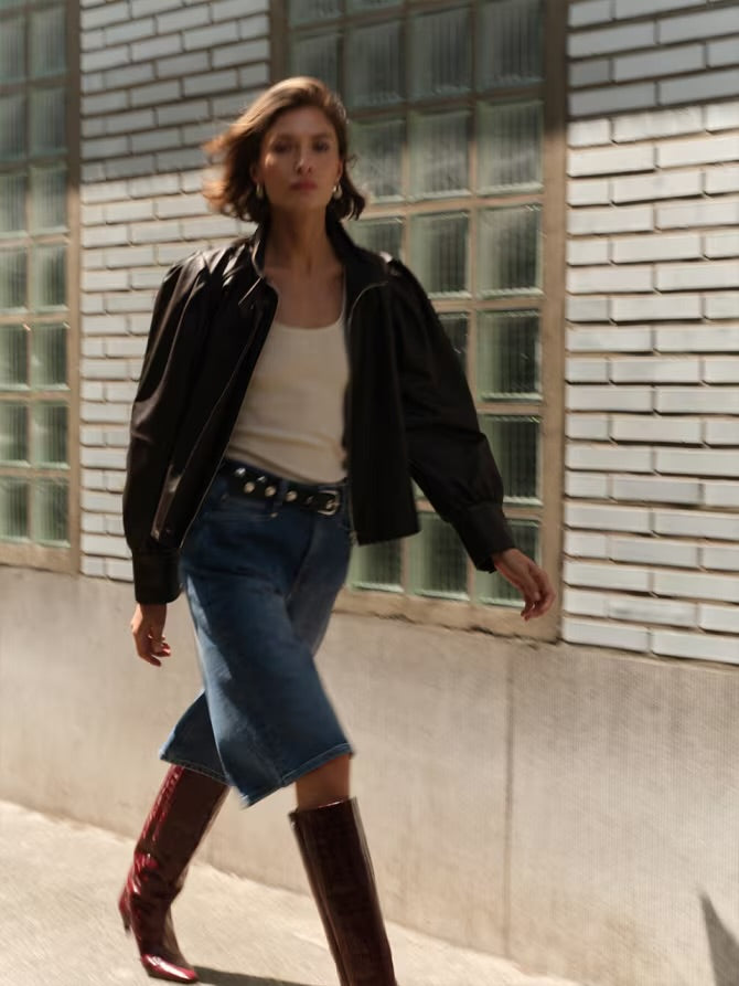 Kyrilo Cropped Leather Jacket Espresso Brown. Helt rå brun skinnjakke fra Dante6 med høy ståkrage og skjult glidelås foran. Statement-puffermer med generøse legg på skuldrene og høye mansjetter gir plagget sitt karakteristiske uttrykk. Style jakken opp med skreddersydde bukser eller ned med favorittjeansen din. Normal i størrelsen, litt boxy fasong.