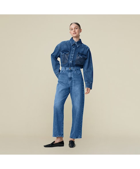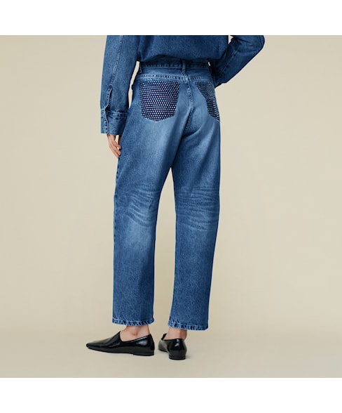 Globe Diamond Occlusion. Superkul jeans fra Lois, med ballongfasong og diamantdetaljer istedenfor lommer bak. Buksen har høyt liv,croppet lengde og er romslig i fasongen. Gå en størrelse ned om du vil ha den smalere. Flere størrelser kommer!