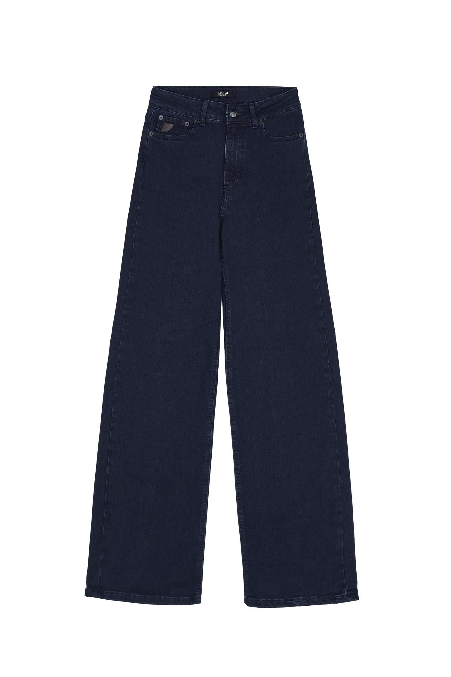 Palazzo Night Blue Rinse. Bestselgermodell fra Lois Jeans i en mørk blå rinsevask med mørke detaljer. Klassisk jeans med rette, vide ben.