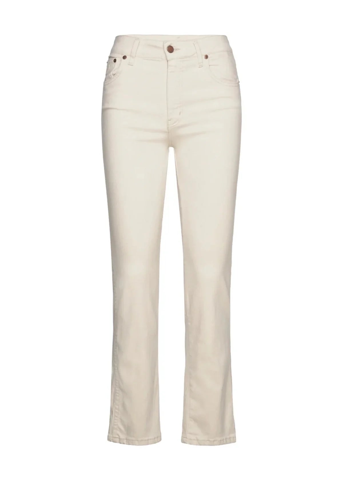 Malena Megalia Crudo fra Lois Jeans. Malena fra Lois Jeans har medium høyt liv, sitter smalt over hofter og lår, og har rette ben. Den ankelkorte lengden gir buksen et friskt og trendy preg, samtidig som den gjør den enkel å style med både sneakers, loafers eller boots. Denne varianten kommer i en nydelig kremhvit farge som er både tidløs og allsidig – like fin til lyse toner som til kontrastfarger. Jeansen er laget i en myk kvalitet med god stretch, noe som gir høy komfort og gjør at den holder godt på både fasong og farge. Klassisk femlommersmodell med beltehemper i linningen og lukkes med knapp og glidelås. Perfekt for deg som ønsker en kortere bukse, eller for deg som ikke er så høy.