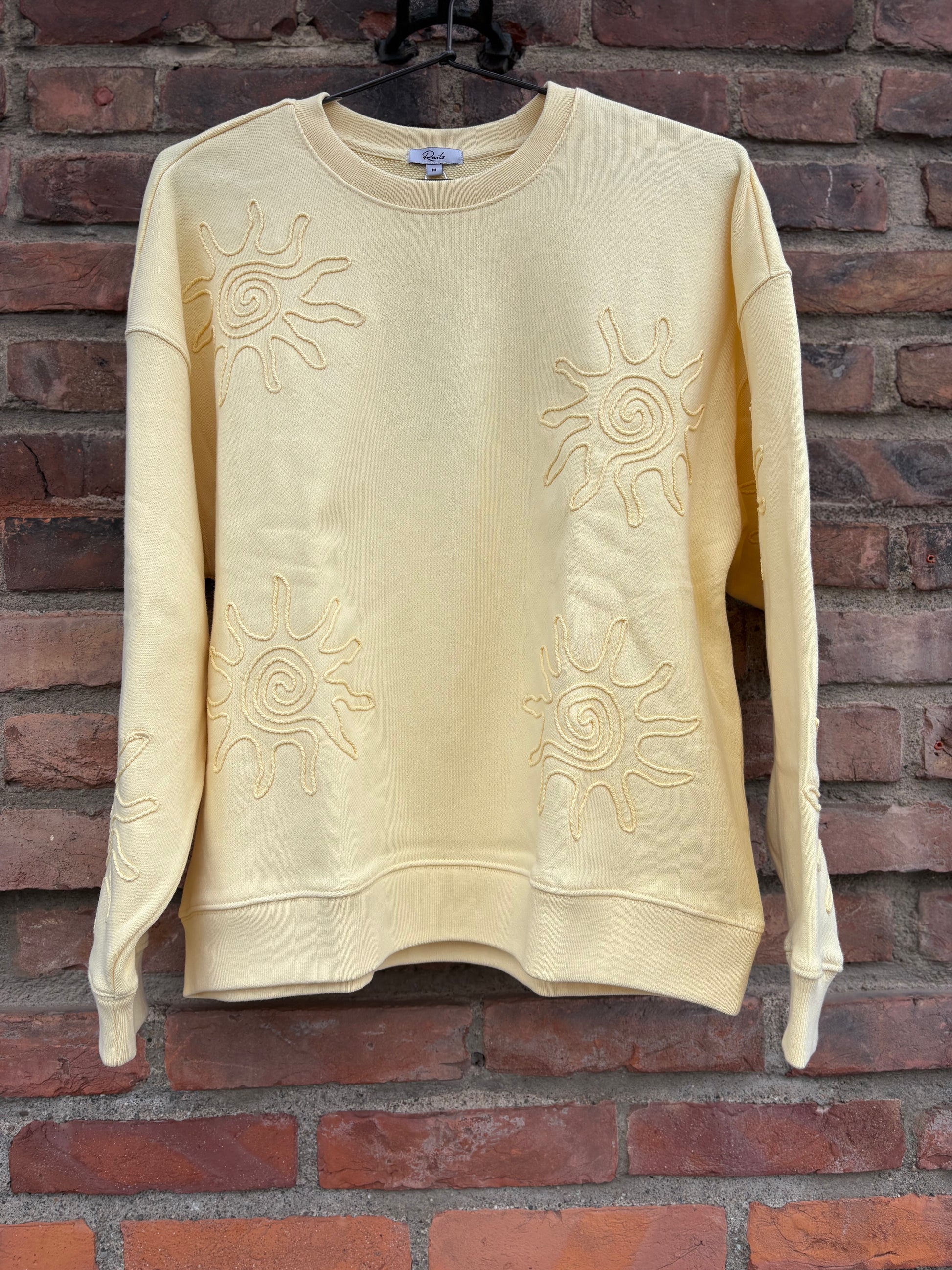 Beckley Sunshine. Supercomfy, gul genser fra Rails, med broderier. Den kommer i et deilig og mykt materiale. Style den med favorittbuksen, for det perfekte hverdagsantrekket!